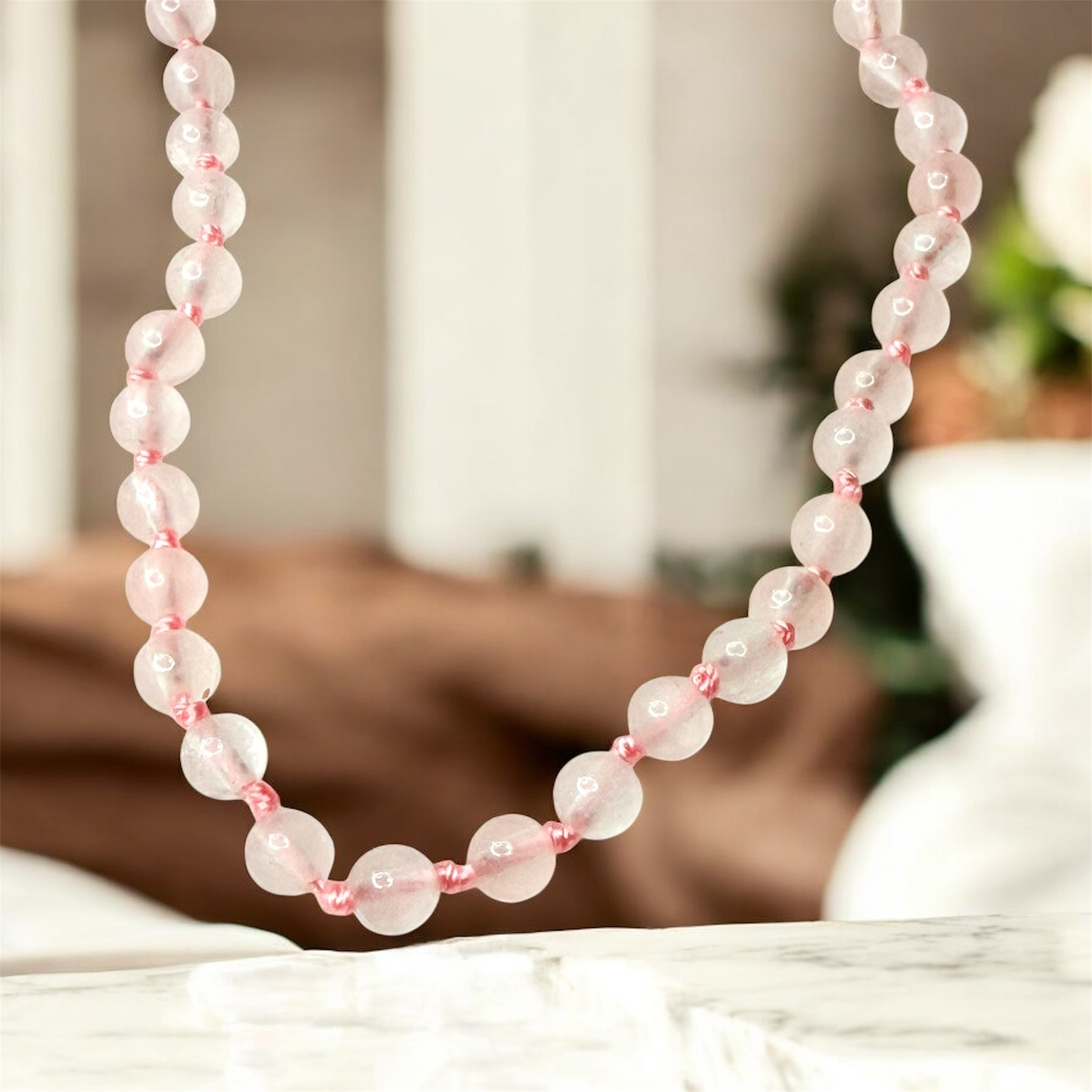 Collar de Cuarzo Rosa en Bolas de 4 mm – Amor, Armonía y Dulzura Interior