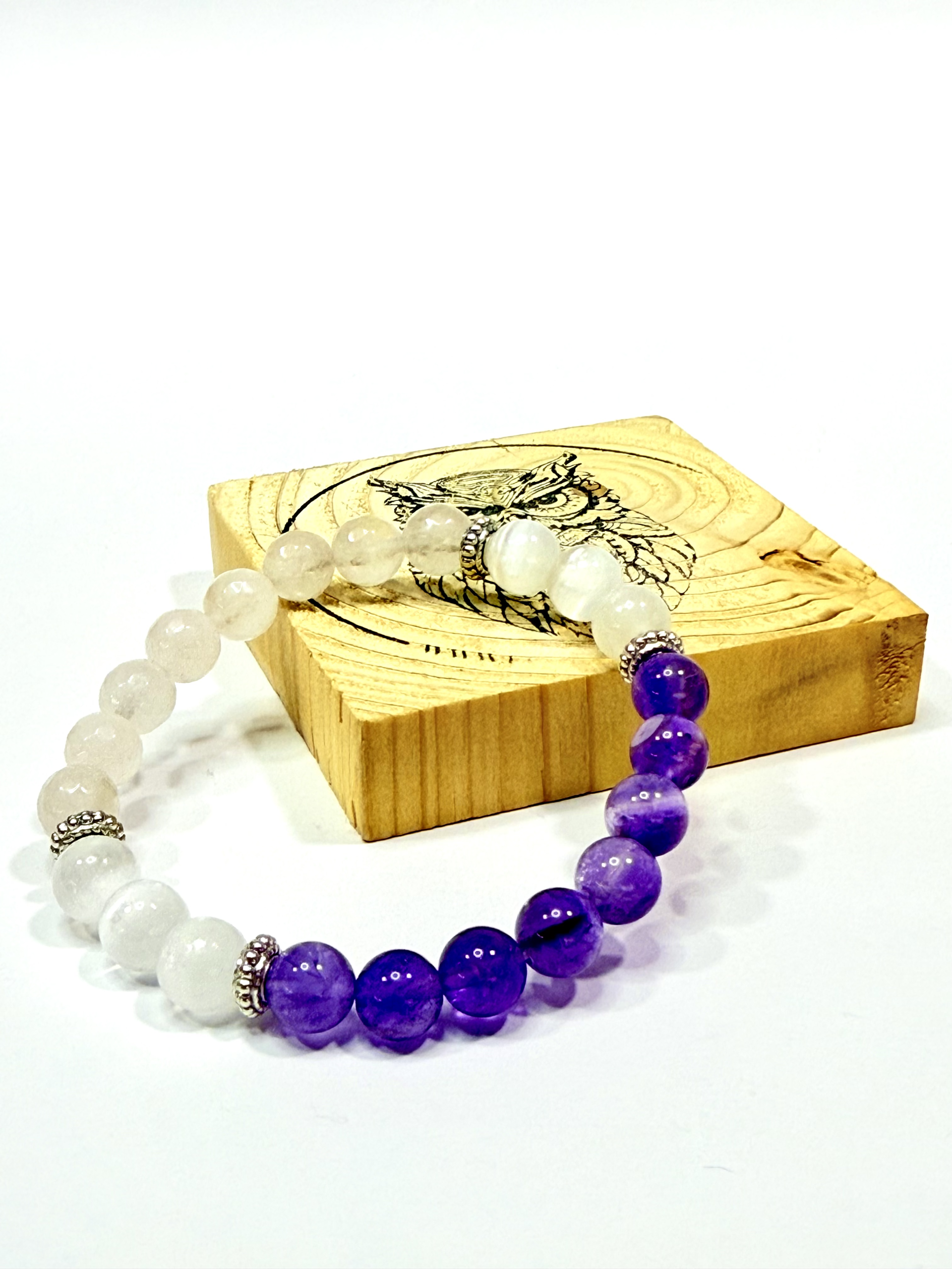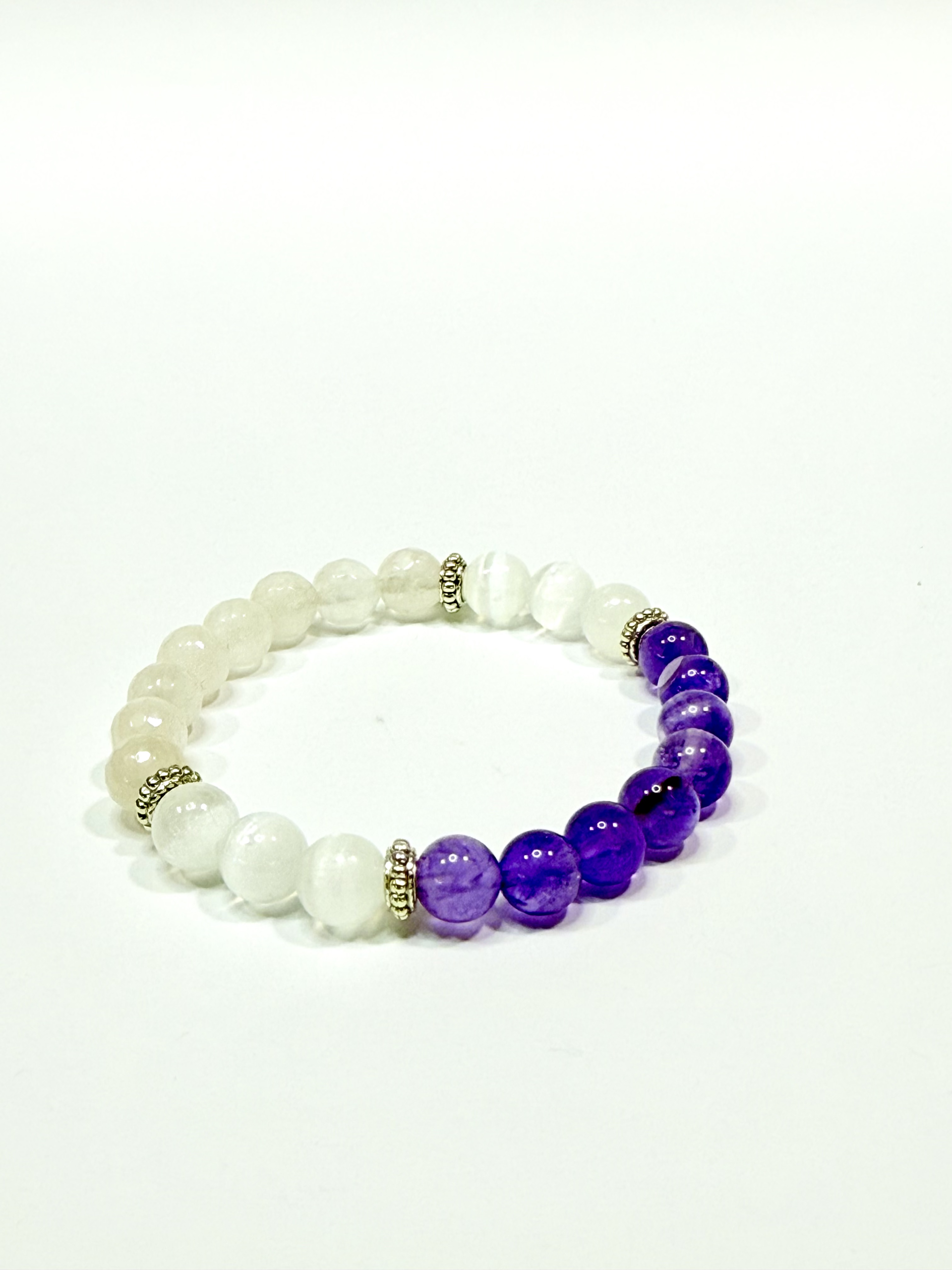 Inducen a un descanso profundo y reparador. La Amatista calma la mente, el Cuarzo Rosa suaviza las emociones, y la Selenita limpia la energía antes de dormir.