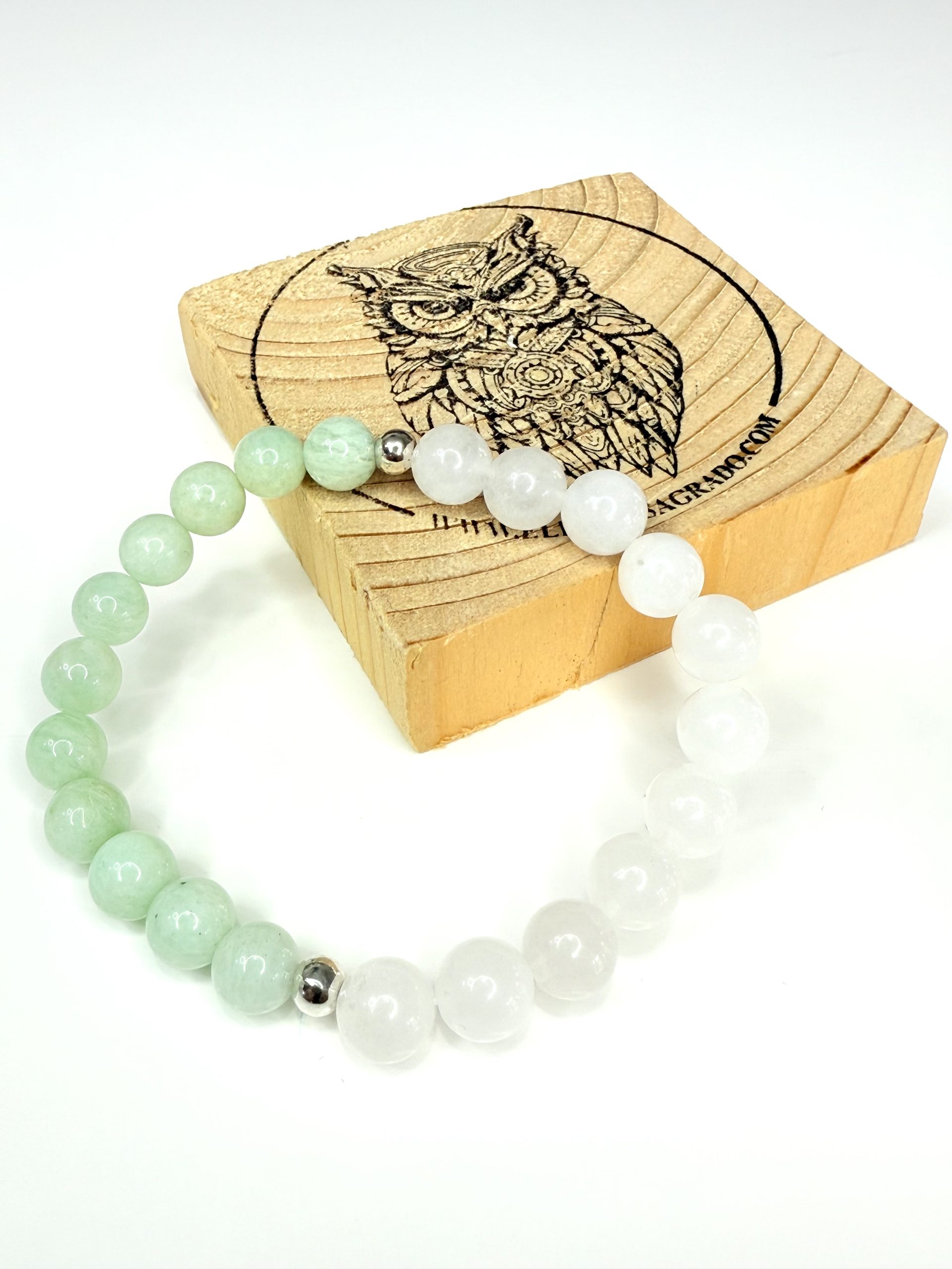 La combinación de Angelita y Jade Blanco une la energía celestial y tranquilizadora de la Angelita con la serenidad pura y equilibrante del Jade Blanco. Esta fusión armoniza el plano emocional y espiritual, generando un estado de calma profunda, claridad interior y conexión con planos elevados. Es ideal para quienes buscan paz, equilibrio y una guía espiritual sutil pero poderosa.
