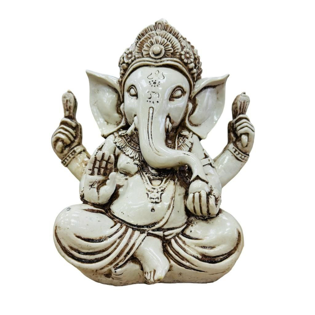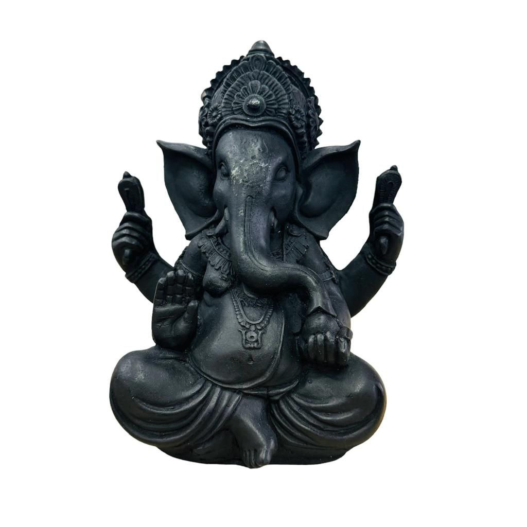 Imponente figura de Ganesha, la deidad hindú que simboliza sabiduría, prosperidad y la eliminación de obstáculos. Ideal para atraer buena fortuna y energía positiva a cualquier espacio, aportando un toque espiritual y decorativo.
