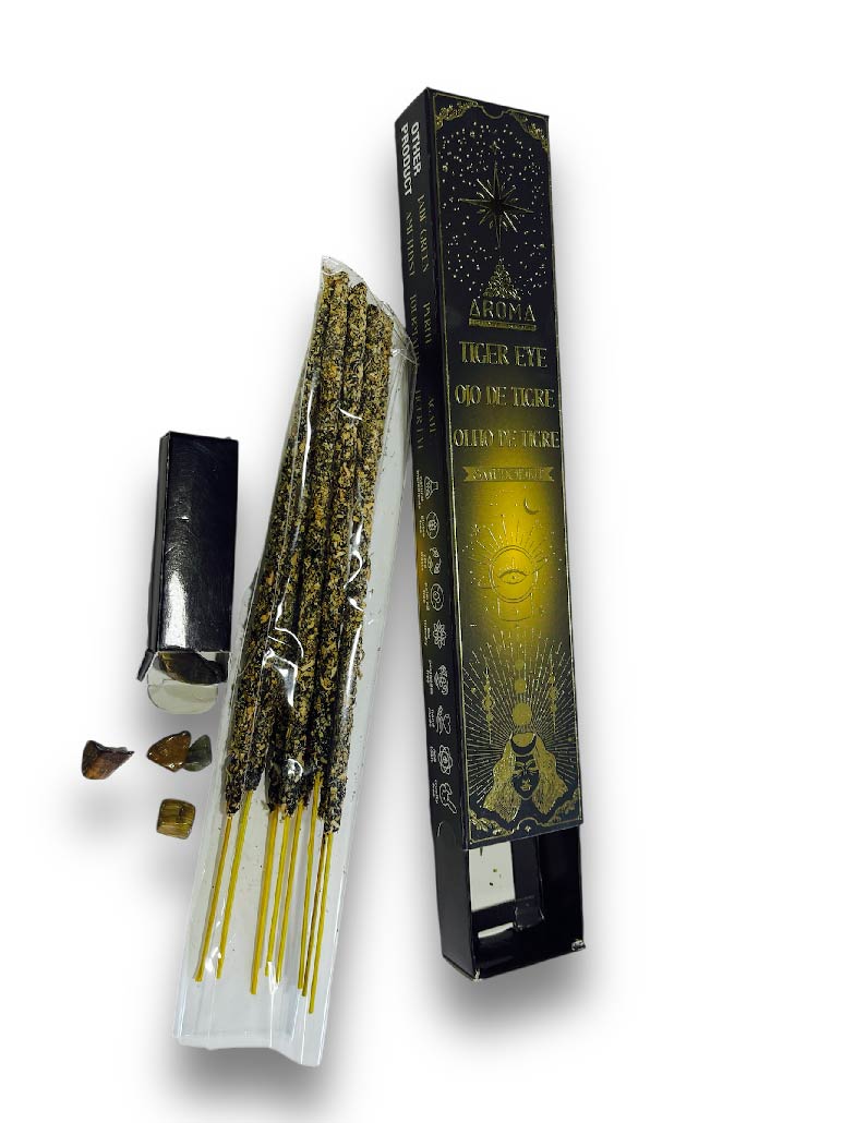 Enciende el poder dentro de ti con nuestras exclusivas cajas de incienso Ojo de Tigre. Cada caja incluye 8 varillas de incienso de larga duración, creadas para llenar tu espacio con un aroma cálido y energizante, perfecto para momentos en los que necesitas concentración, motivación y protección. Este incienso es ideal para despertar tu fuerza interior, elevar tu confianza y mantener la claridad mental en tu día a día.