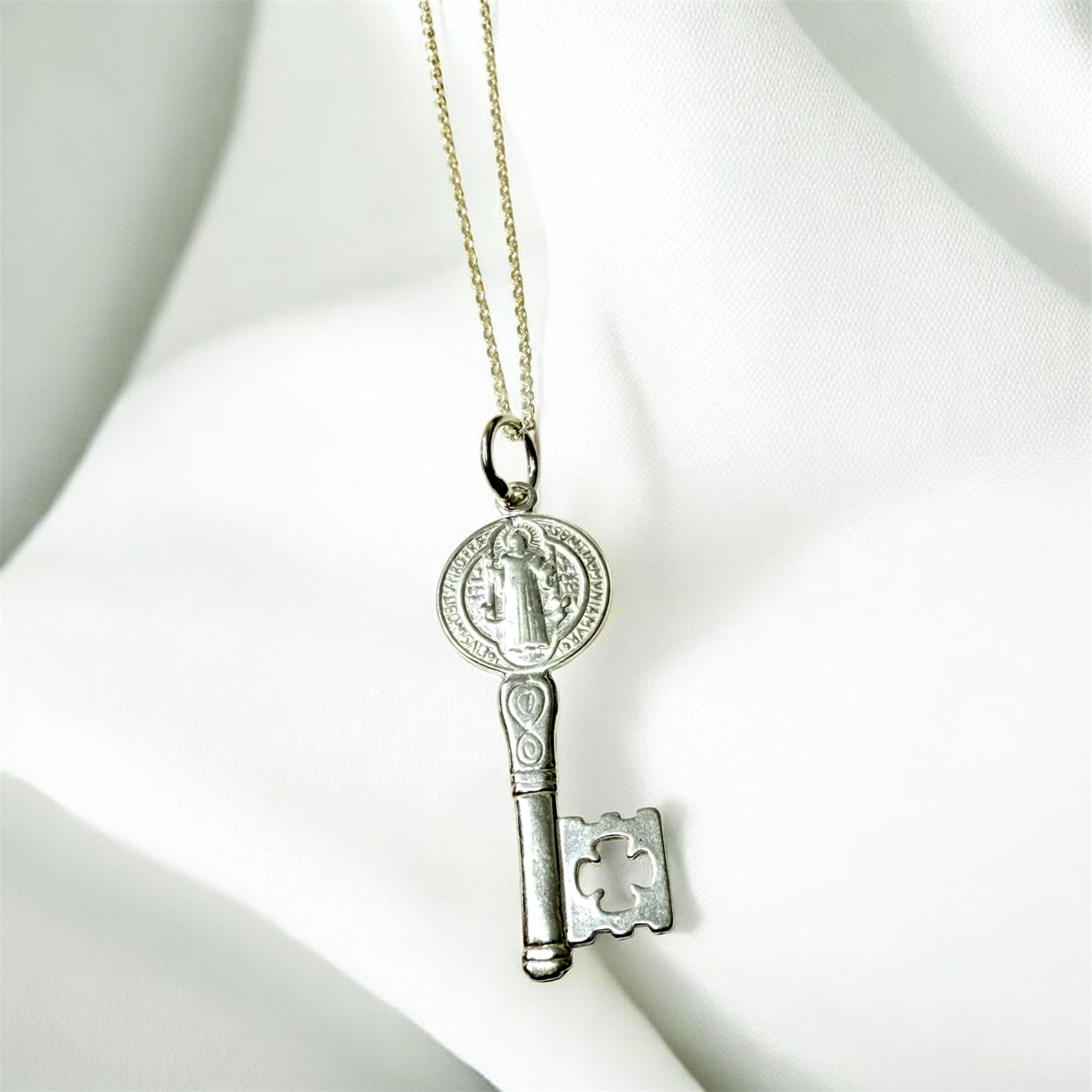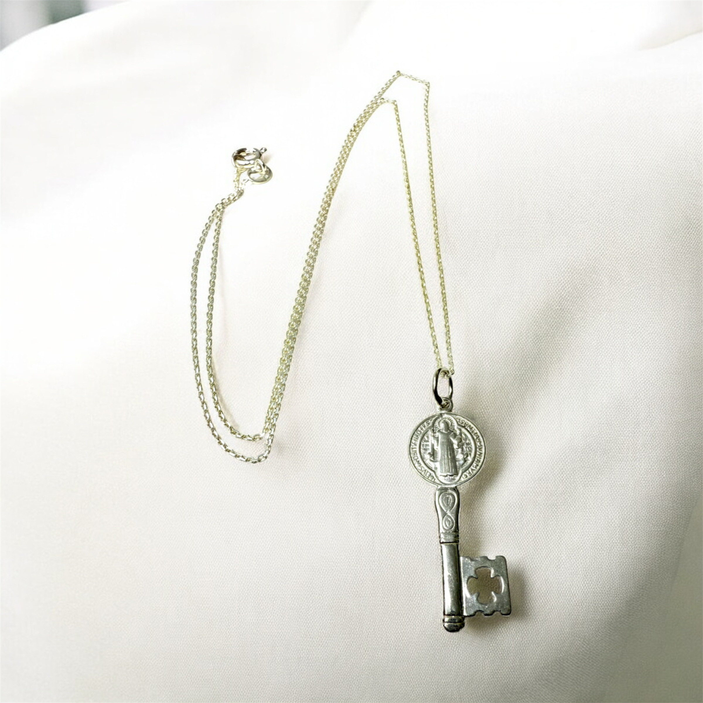 Collar Llave de San Benito en Plata – Protección Espiritual y Apertura de Caminos